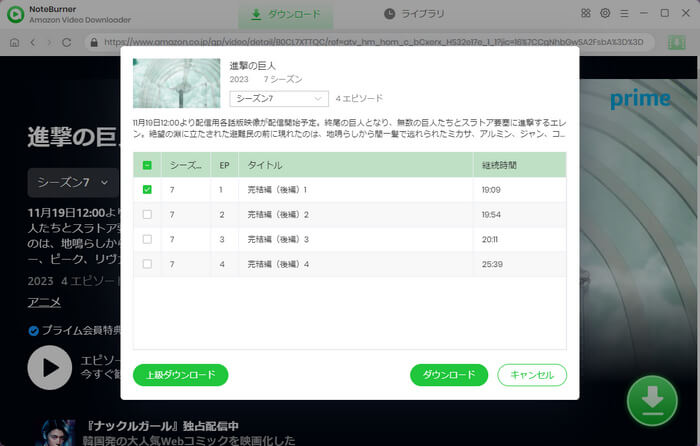 ステップ4、Amazonプライムビデオのダウンロードが完了